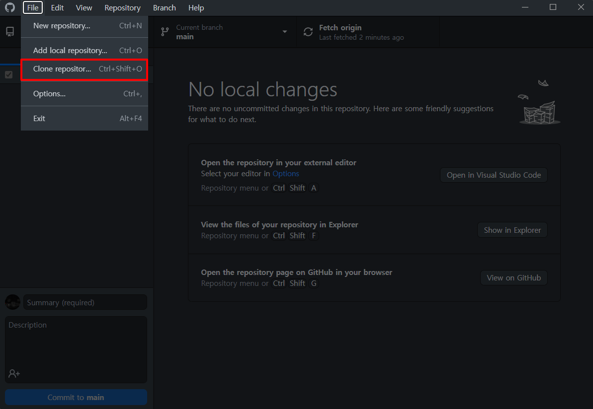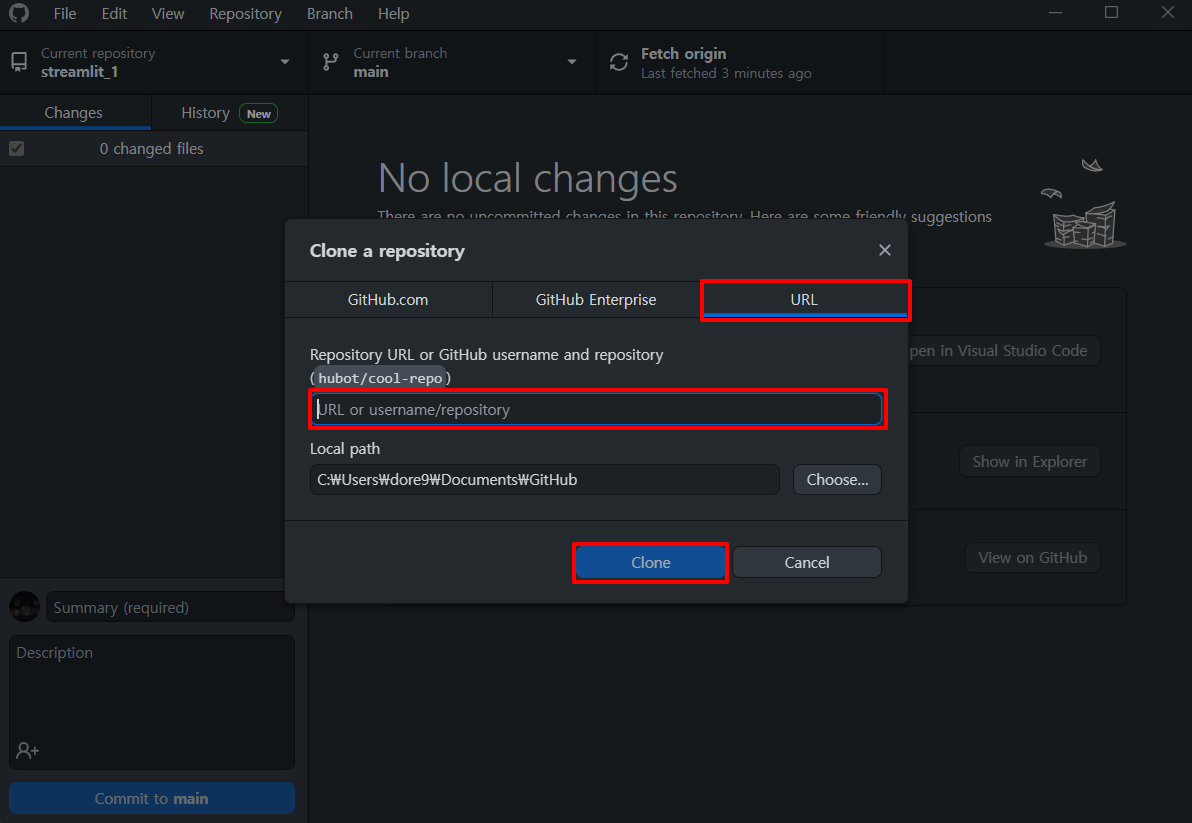 깃허브 데스크탑에 레퍼지토리 클론하기