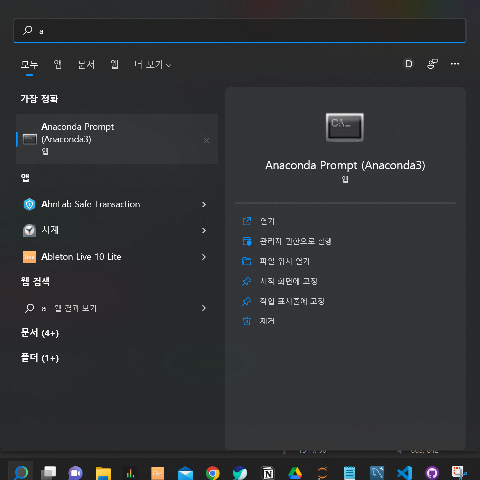 Anaconda Prompt를 실행한다. 권한이 없다는 오류가 생길수도 있으니