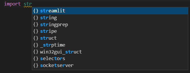 import str까지만 타이핑 했을때 자동완성문이 생긴다면 설치가 제대로 된것이다.
