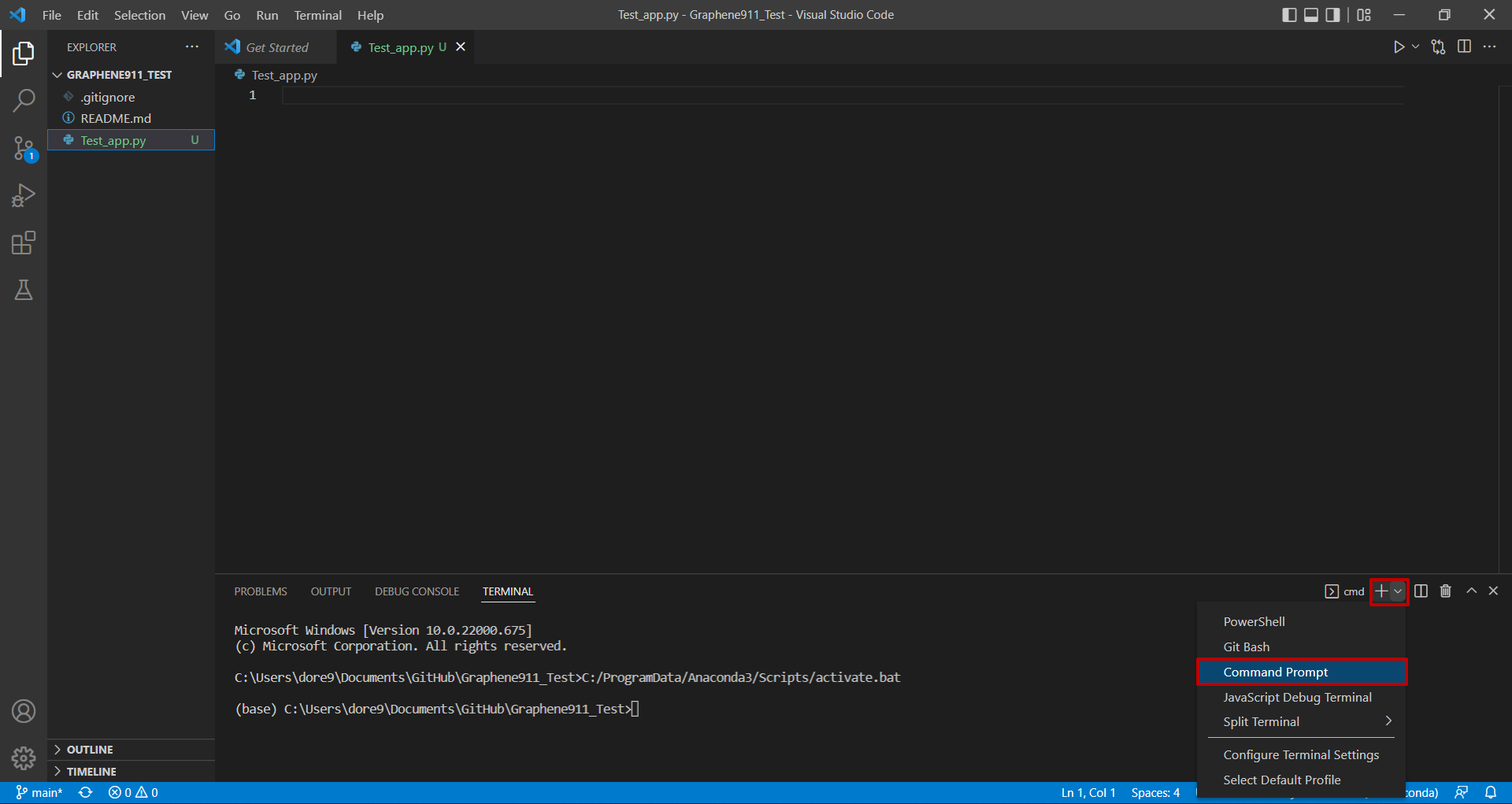 우측 하단에 +버튼을 눌러 Command Prompt를 실행한다.
