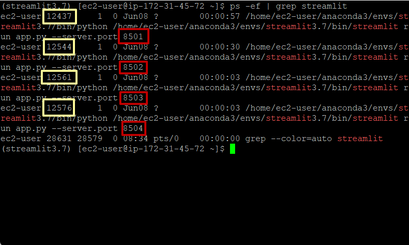 ex) ps -ef | grep streamlit