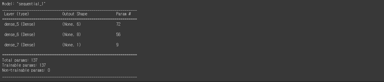 # input layer는 X_train의 컬럼의 갯수가 들어가야한다. 히든레이어