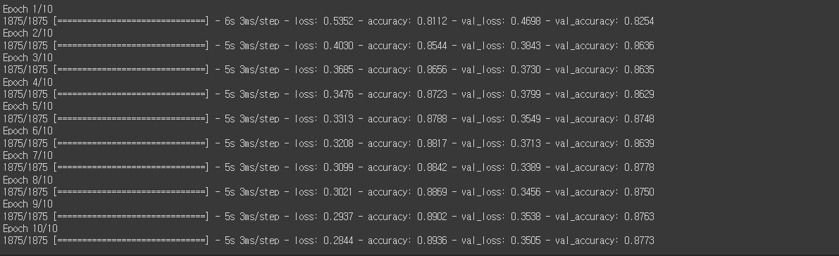 vaildation_data는 data를 지정해 줌으로써 test data로 중간평가를 진행할 수 있다.