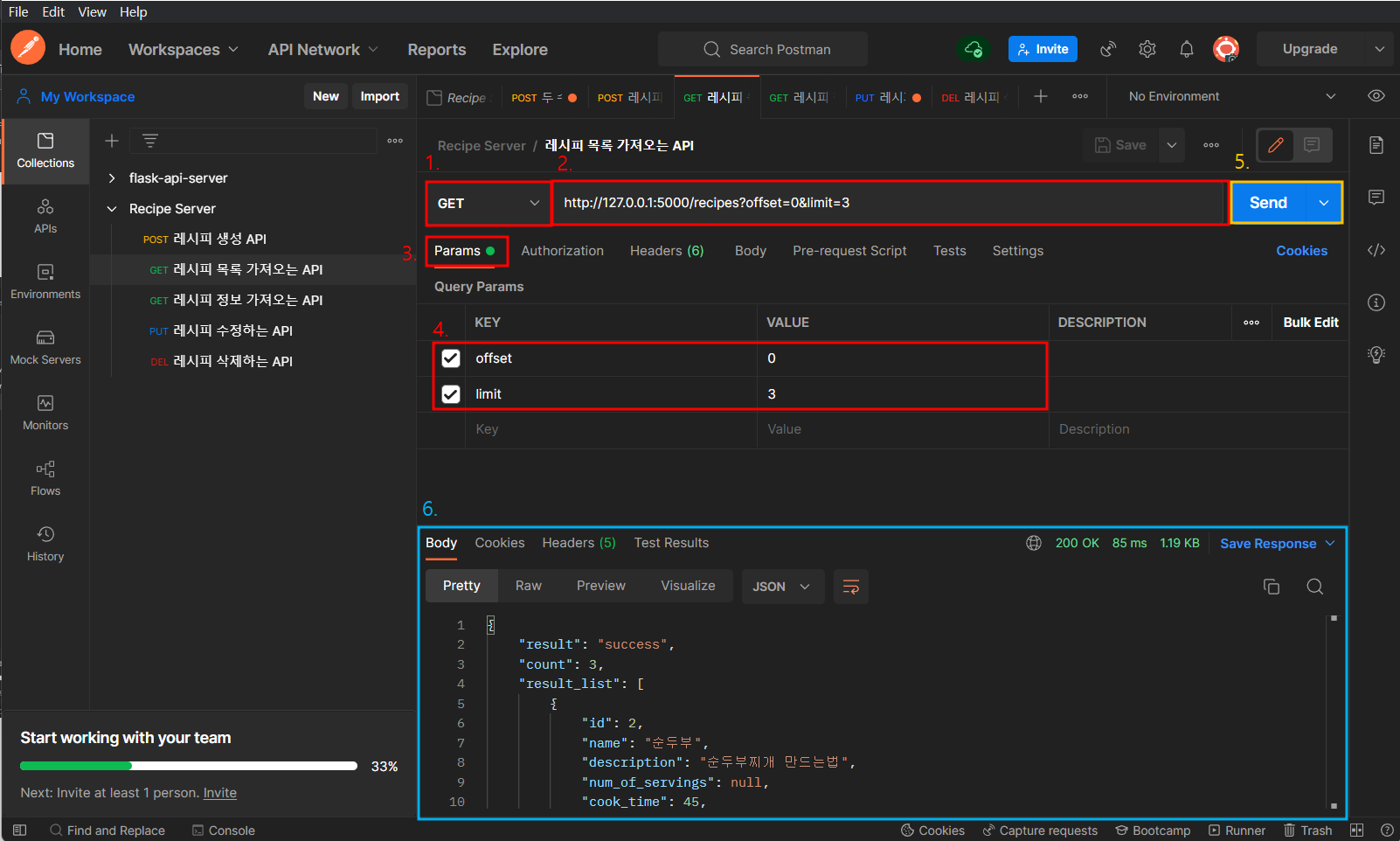 insert 했던 class를 이어서 레시피 목록을 가져와 보는 API를 만들어 보자