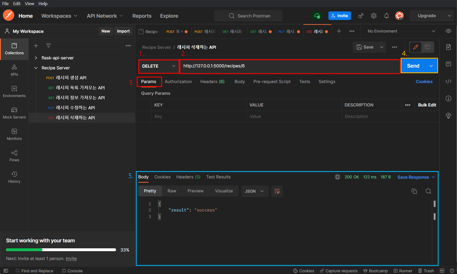 3. python app.py 실행 후 POSTMAN으로 test
