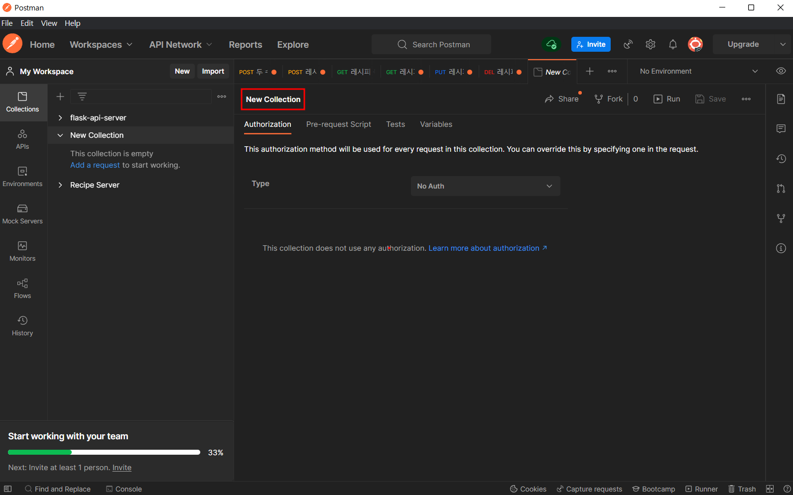 9. Collection 을 클릭해 새로운 Collection을 만들어 준다.