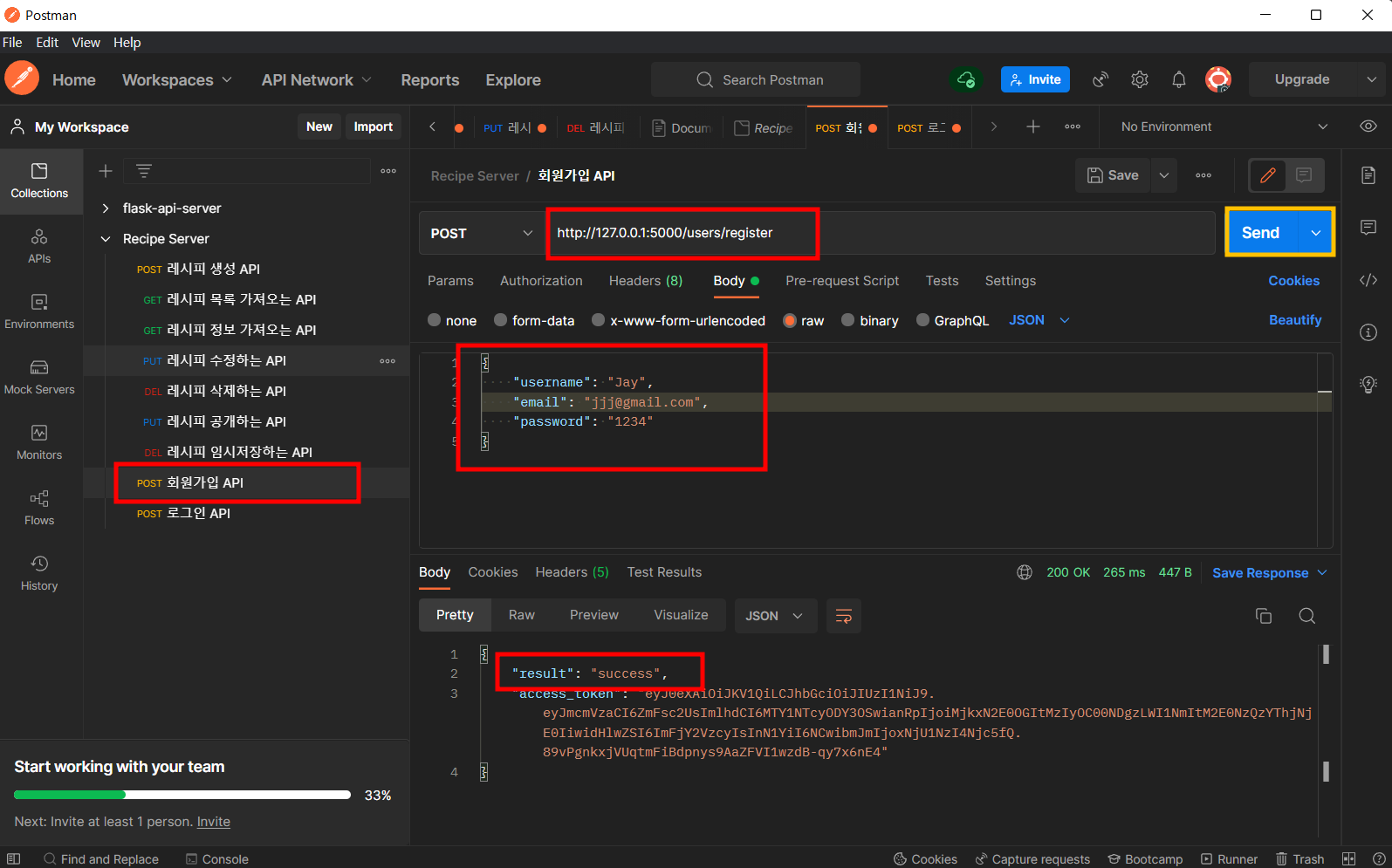 # 회원가입은 Method = POST, '/users/register', data = username, email, password