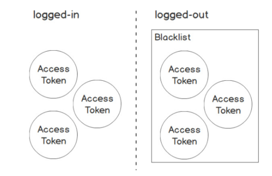 JWT는 다음처럼 blacklist를 이용해서 logout 기능 사용이 가능하다.
