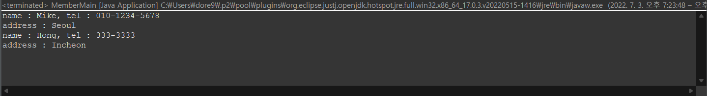 // m1.setMember("Mike", "010-1234-5678", "Seoul");