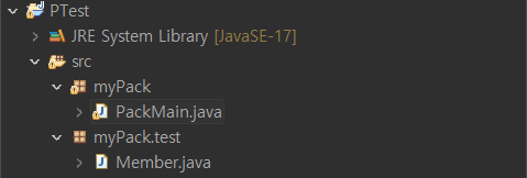 위 이미지처럼 두개의 클래스가 다른 패키지 안에 있을때