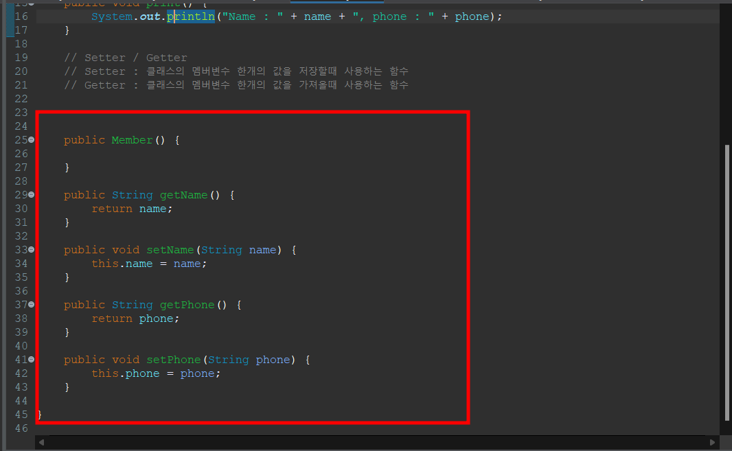 // 멤버 클래스 생성하면서, 이름과 전화번호