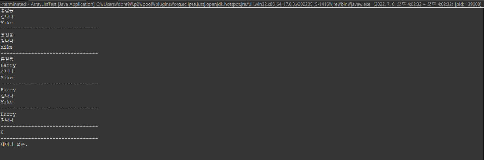 // ArrayList에 있는 데이터를 모두 출력