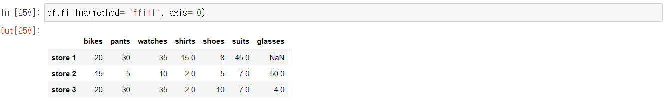 # 아래행의 값을 NaN 자리에 채우는 방법