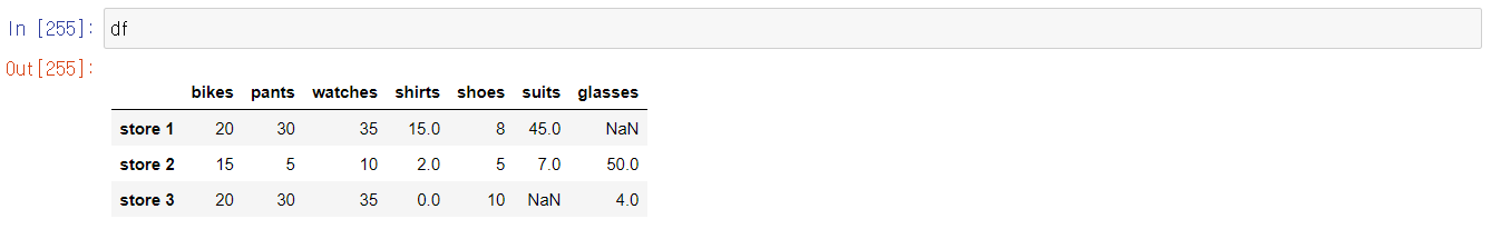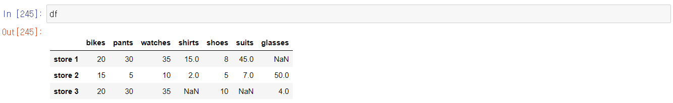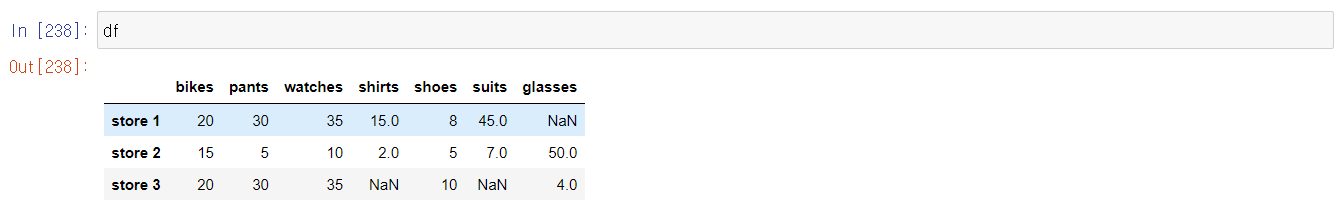 df = pd.DataFrame(data= items2, index= ['store 1','store 2', 'store 3'])