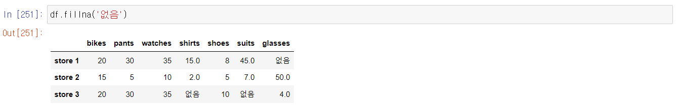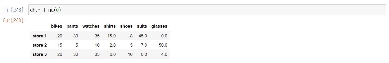 # 셔츠 컬럼의 NaN만 0으로 셋팅
