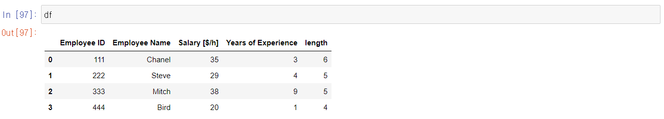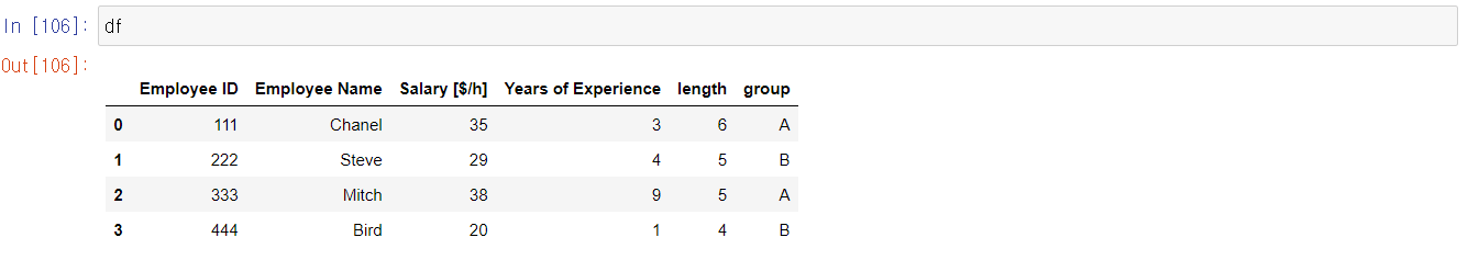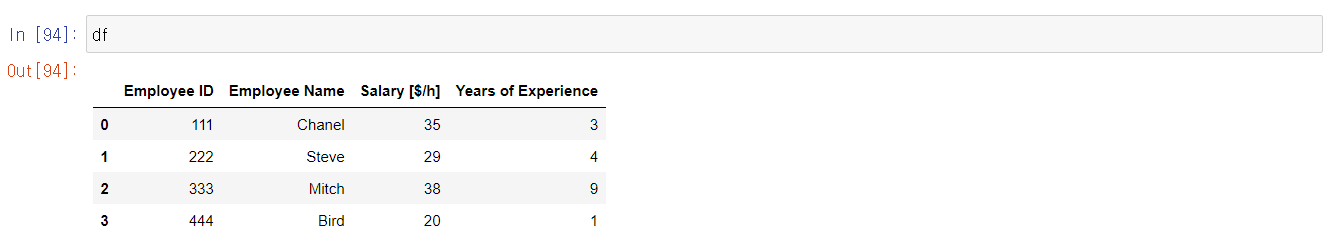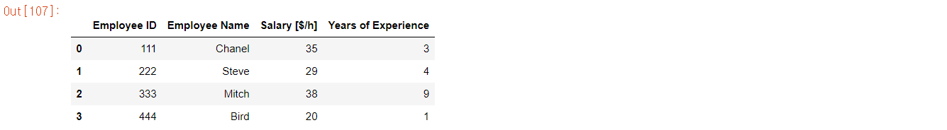 df = pd.DataFrame({'Employee ID':[111, 222, 333, 444],