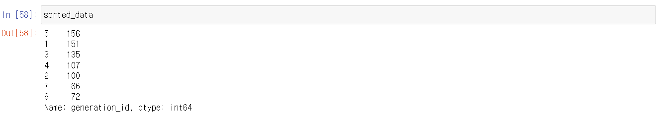 # 제너레이션 아이디 별로, 각각 몇개씩 있는지 차트로 표시