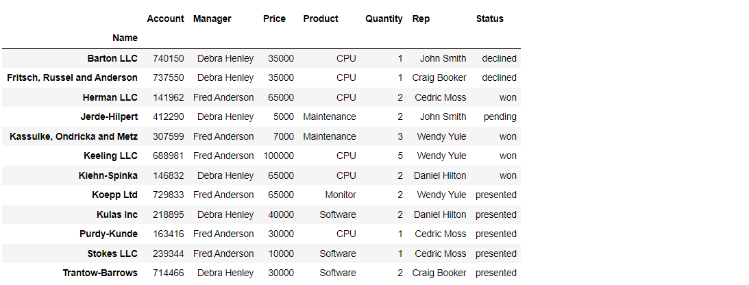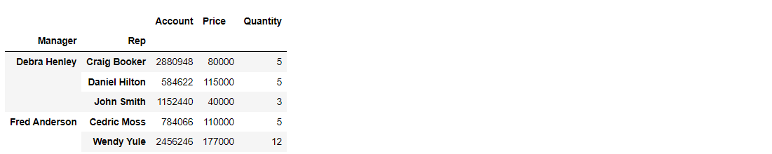pd.pivot_table(df, index=['Manager', 'Rep'], aggfunc=np.sum)