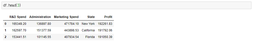 Multiple Linear Regression 아래처럼, 여러개의 features를 기반으로, 수익을 예측하려 한다. 위와 같이, 여러개의 변수들을 통해, 수익과의 관계를 분석하고, 이를 통해, 새로운 데이터가 들어왔을 때,