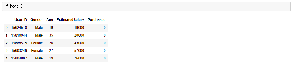 나이와 연봉으로 분석해서, 물건을 구매할지, 안할지를 분류해보자