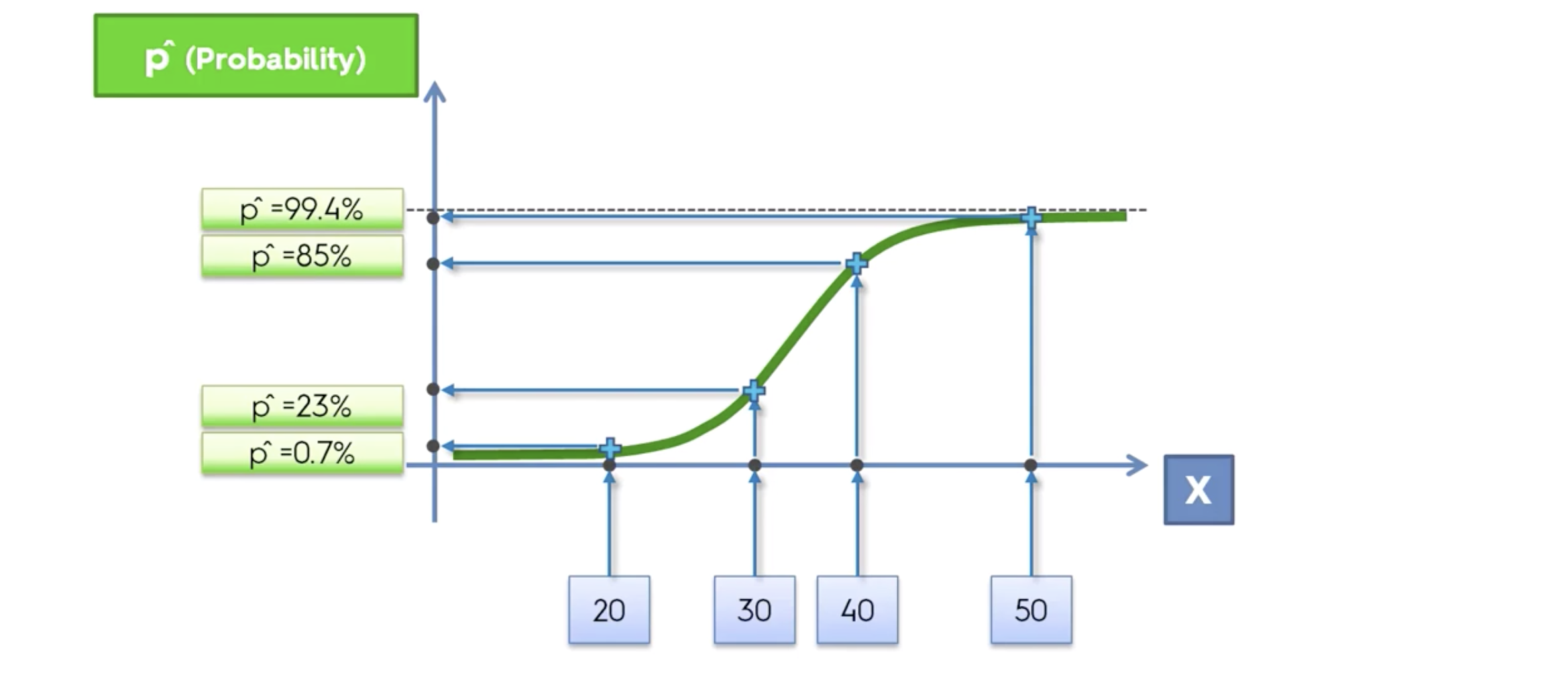 이 확률값은, 위에서의 시그모이드 함수를 적용한 식을 통해 나온 값임을 기억한다.