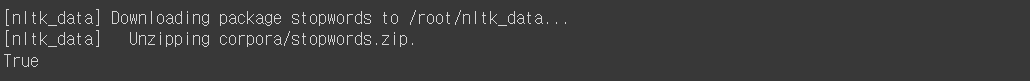 # 3. 문자열에 불용어가 포함되어있는지 확인해서, 불용어 제거한다.