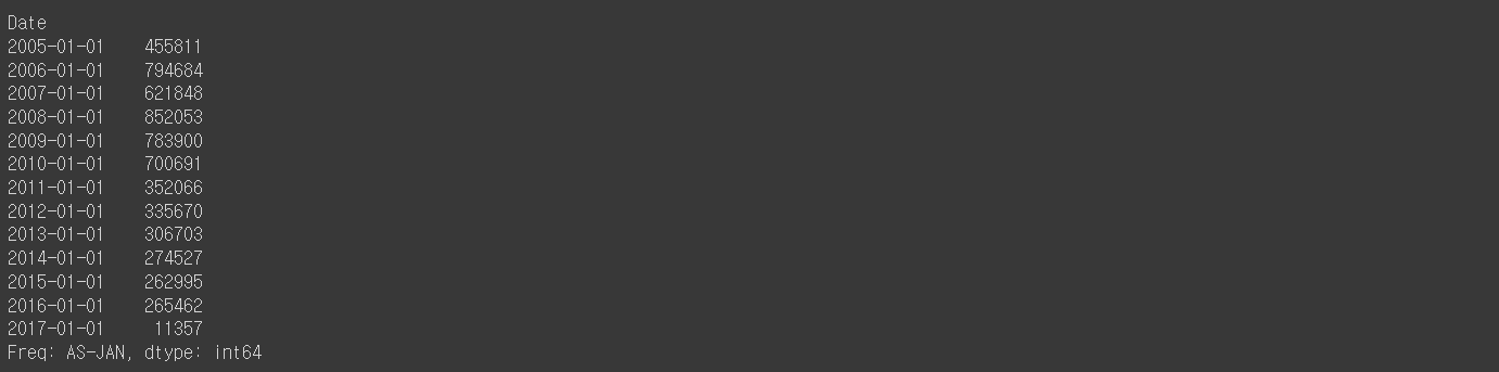 df_year = df.resample('YS').size()