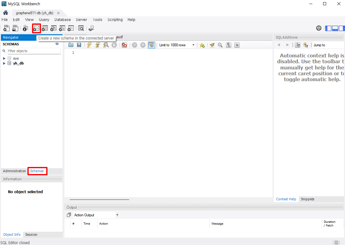 1. MySQL Workbench 에서 내가 생성한 DB를 클릭해 접속한다.