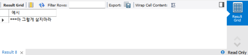 select replace('나쁜놈아 그렇게 살지마라', '나쁜놈', '***') as 예시;