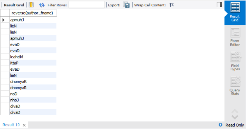 select reverse(author_fname)