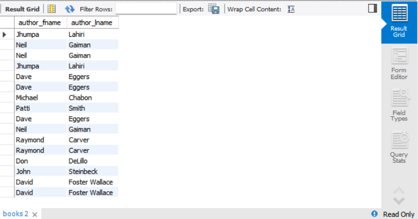 select concat(author_fname, ' ' ,author_lname) as full_name