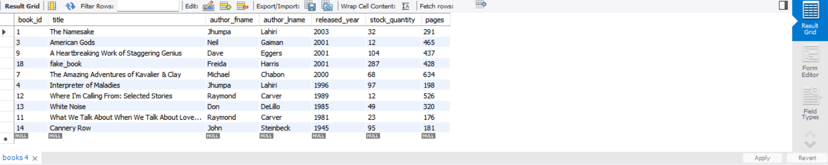 최신책을 기준으로 10번째 책부터 끝까지 가져오시오.