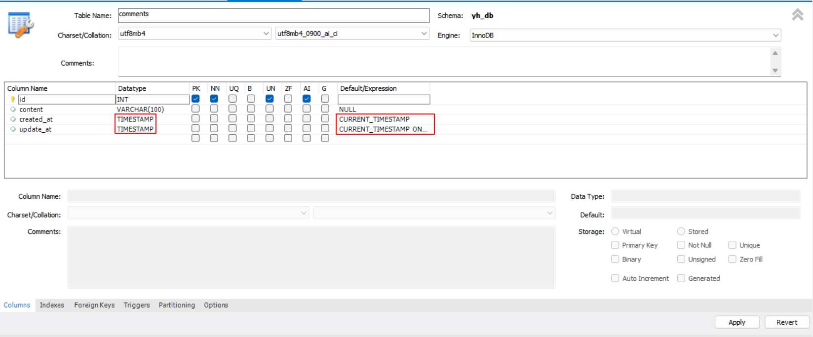 위 이미지와 같이 Datatype은 TIMESTAMP로 설정