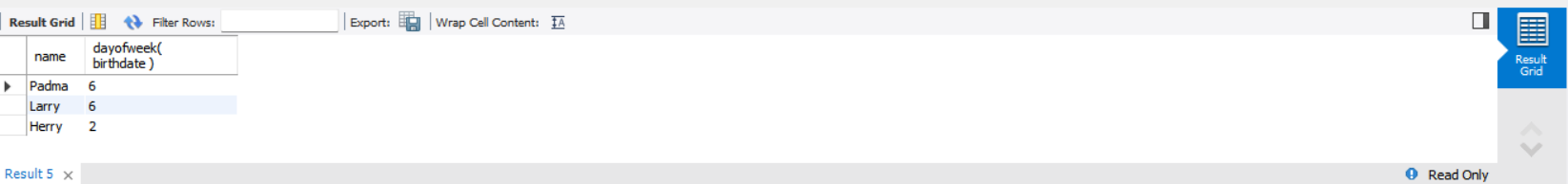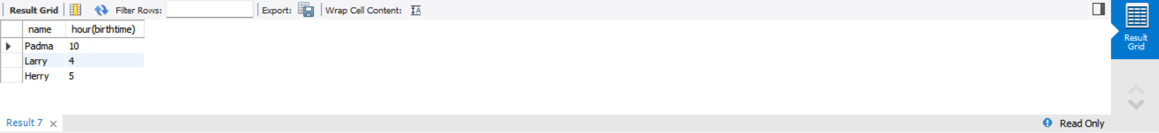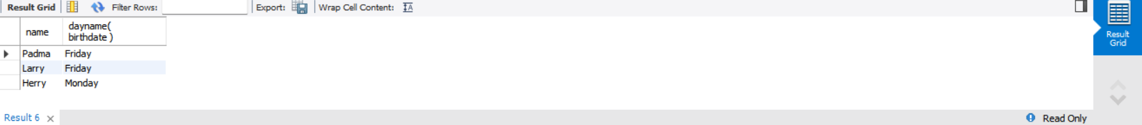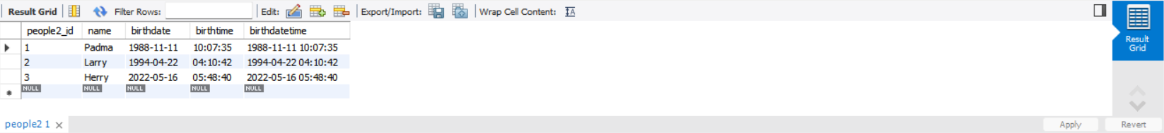 ('Padma', '1988-11-11', '10:07:35', '1988-11-11 10:07:35'),
