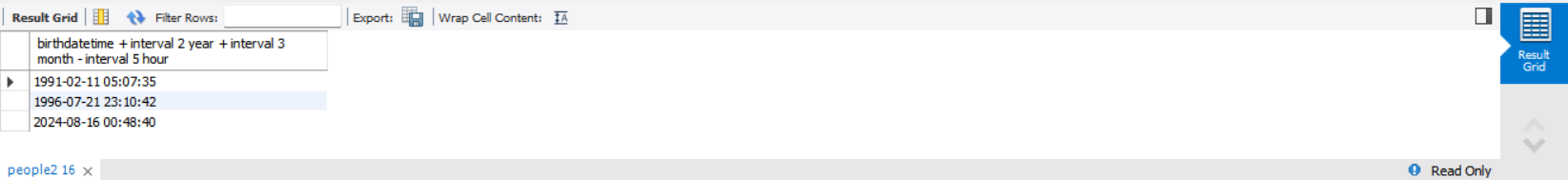 select birthdatetime + interval 2 year + interval 3 month - interval 5 hour