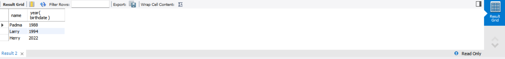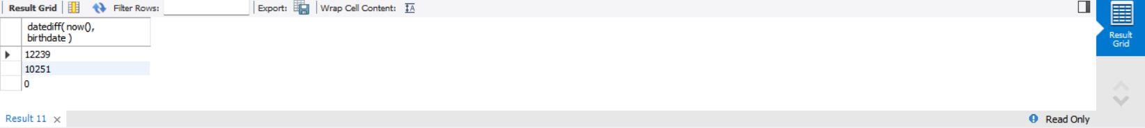 birthdate 컬럼과 현재 시간의 차이를 가져오세요