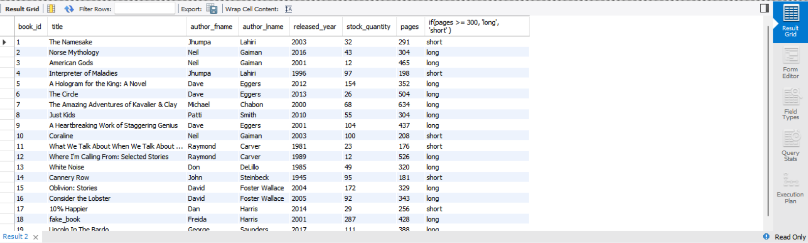 select *, if(pages >= 300, 'long', 'short' )