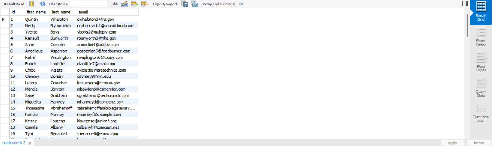 select * from customer;