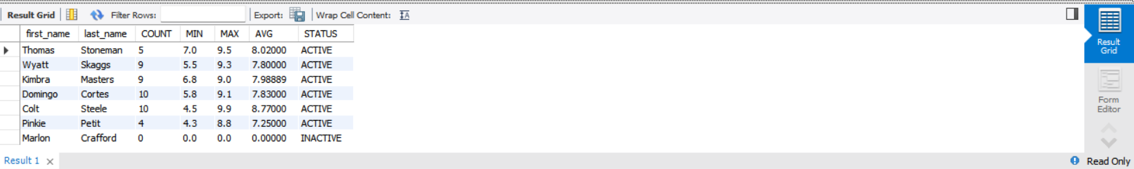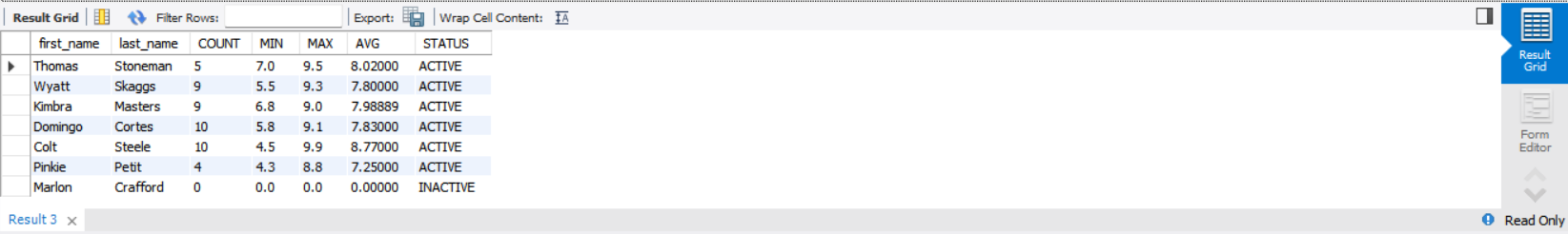 select rv.first_name, rv.last_name, count(r.rating) as COUNT,